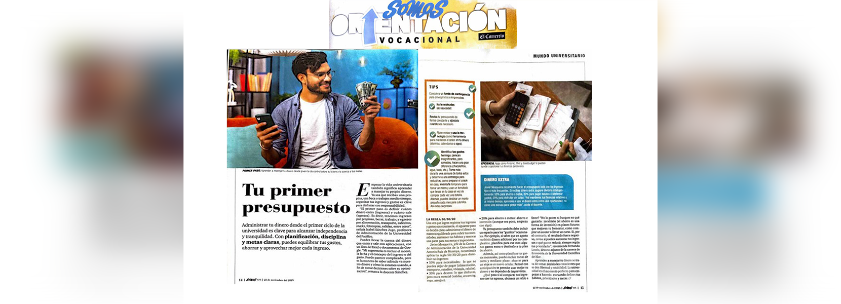 Javier Mosqueira, jefe de la carrera de Administración de la Universidad Antonio Ruiz de Montoya (UARM), participó en un informe del suplemento Orientación Vocacional de El Comercio. En su intervención, brindó recomendaciones para realizar un presupuesto mensual en tu etapa universitaria.