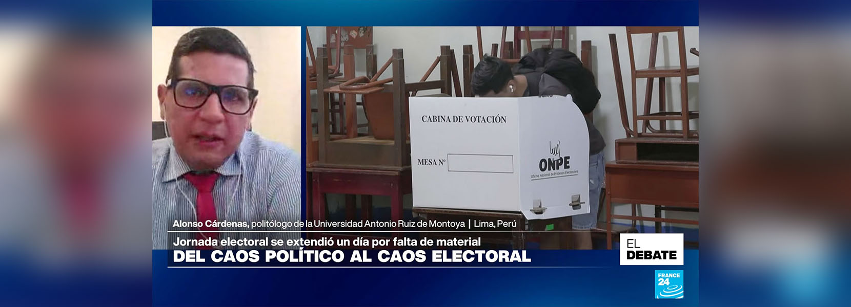 Alonso Cárdenas, docente de la carrera de Ciencia Política de la Universidad Antonio Ruiz de Montoya (UARM), participó en una mesa de debate del medio internacional France 24 en español. En su intervención, analizó el escenario político que se aproxima tras las elecciones 2026.