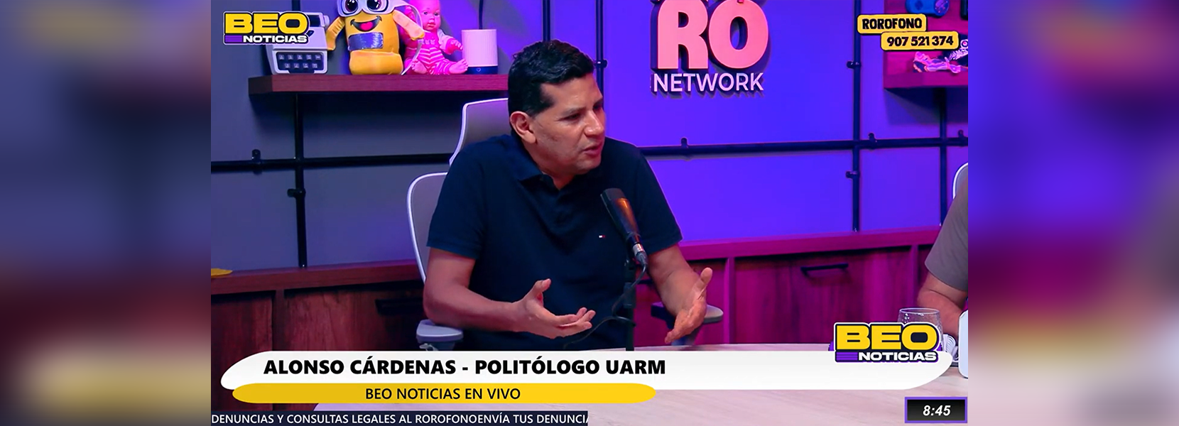 Alonso Cárdenas, docente de la carrera de Ciencia Política de la Universidad Antonio Ruiz de Montoya (UARM), participó en una entrevista del programa de streaming Beo Noticias de la Roro Network. En su intervención, analizó las consecuencias del deterioro institucional y el futuro rol del Senado en el marco de las elecciones 2026.