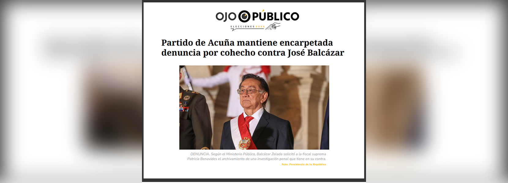 Cabe precisar que José María Balcázar Zelada (Perú Libre) cuenta con una denuncia que involucra a la fiscal suprema Patricia Benavides, por presunto cohecho, que está pendiente de trámite desde abril de 2025 en la Subcomisión de Acusación Constitucionales del Congreso.