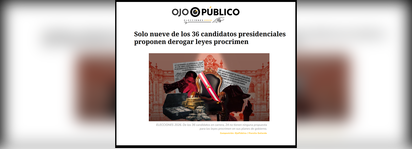 César Cárdenas, docente de la carrera de Derecho de la Universidad Antonio Ruiz de Montoya (UARM), participó en un informe de Ojo Público. Durante su intervención, analizó las propuestas de los candidatos a las elecciones 2026 en materia de seguridad ciudadana.