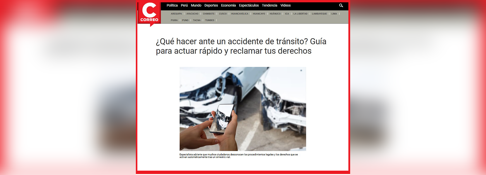 Wendy Ledesma, docente de carrera de Derecho de la Universidad Antonio Ruiz de Montoya (UARM), participó en un informe de Correo sobre los accidentes de tránsito. Según explicó, muchos ciudadanos desconocen los procedimientos legales que se activan tras un siniestro vial.