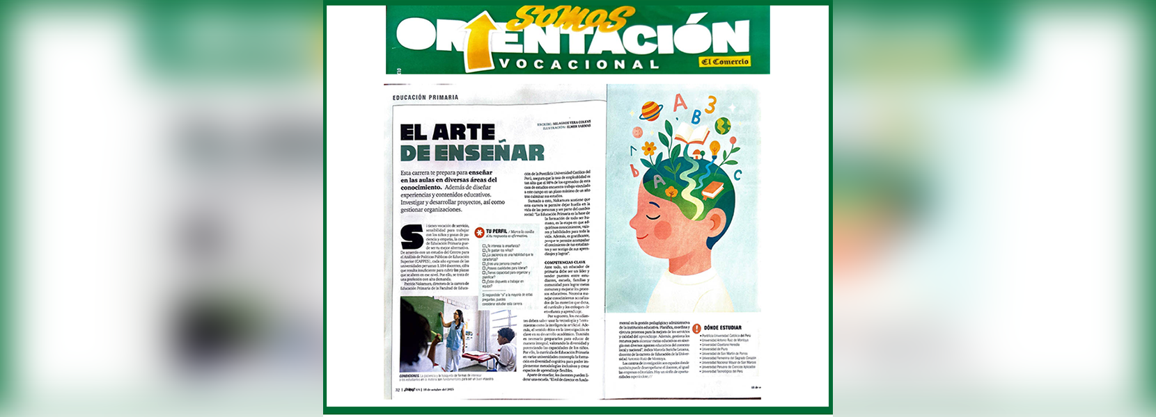 Marcela Beriche, docente de la carrera de Educación Primaria de la Universidad Antonio Ruiz de Montoya (UARM), participó en un informe del suplemento Orientación Vocacional de El Comercio. En su intervención, analizó el perfil de esta profesión y sus oportunidades laborales.