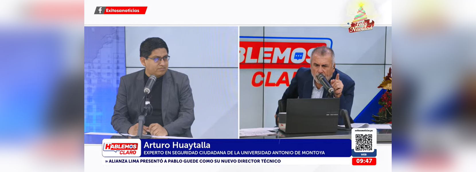 Arturo Huaytalla, docente del Diplomado en Gestión en la Seguridad Ciudadana de la Universidad Antonio Ruiz de Montoya (UARM), brindó una entrevista a Exitosa Noticias. Durante su participación, analizó las medidas del Gobierno para reducir la extorsión y el sicariato, luego de que el Congreso le otorgara facultades legislativas.
