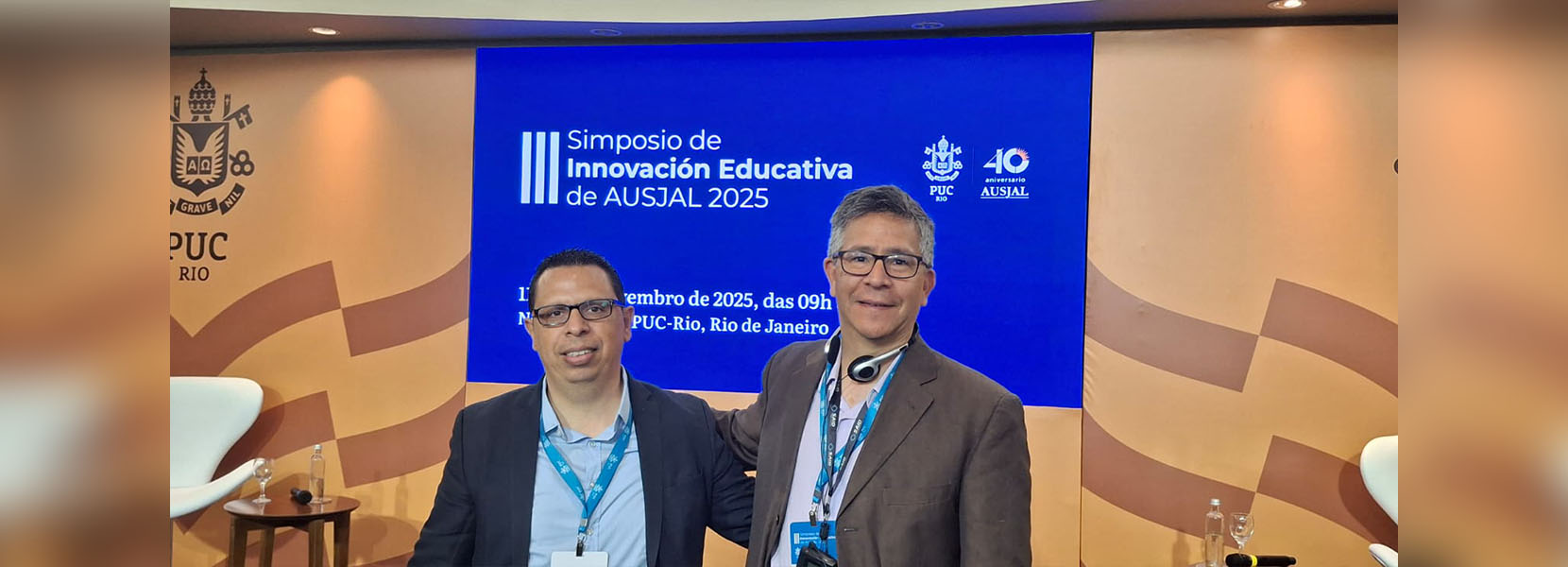 El P. Rafael Fernández Hart SJ, rector de la UARM, y Deivy Cordero, coordinador de la Unidad de Innovación Docente y TIC, participaron en el III Simposio de Innovación Educativa, realizado el 11 y 12 de noviembre en Rio de Janeiro, en el marco de la celebración de los 40 años de la red AUSJAL. Este encuentro es significativo para la UARM, dado que la propuesta educativa UARM “IA con sentido” fue reconocida como una de las mejores buenas prácticas en innovación educativa, lo cual nos llena de orgullo y nos incentiva a estar a la vanguardia en estos temas.