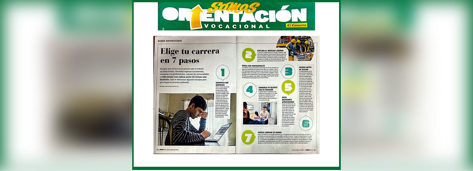 Miguel Flores Galindo, docente de la carrera de Psicología de la Universidad Antonio Ruiz Montoya (UARM), participó en un informe del suplemento Orientación Vocacional de El Comercio. En su intervención, brindó consejos para elegir una carrera profesional.